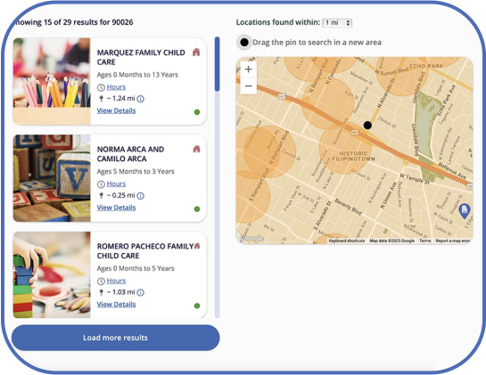 • Head Start and California State Preschool Programs are offered at many Child Care Centers.